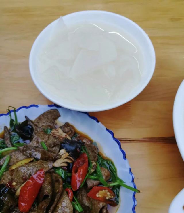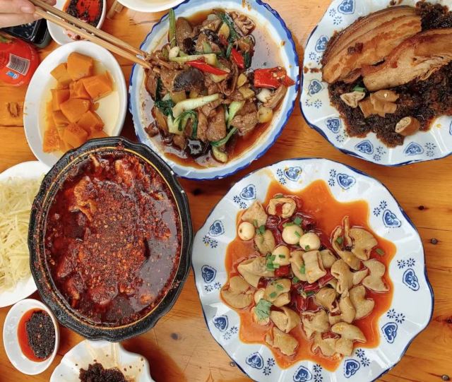 咸烧白,肝腰合炒,回锅肉,蒸排骨,小菜(自拼),卤肥肠,鱼香肉丝,炒土豆丝,豆花,甜椒肉丝