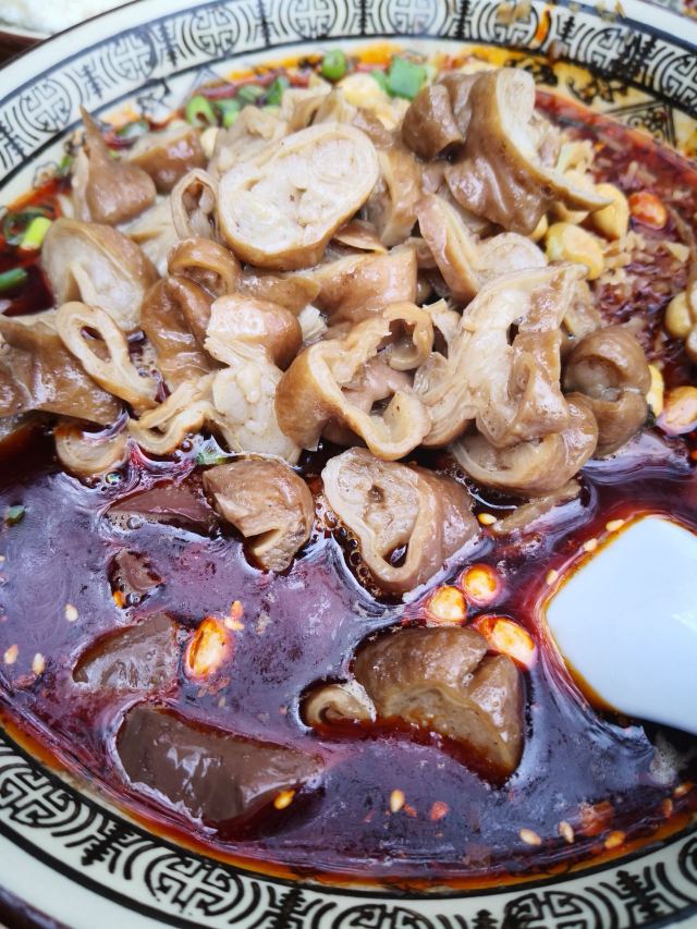 电风扇啊电风扇#蜻蜓点水吃逛青城,张醪糟,马煮血,刘荞面,建福宫的盖碗茶# 老妹儿从北京到成都,著名景点和美食基本都吃了,这盘有一天时间,干脆走远点,去看似传统旅游路线却又是新玩法的逛吃青城 吃张醪糟,就一定要吃马煮血。一甜,一咸搭配,经典。 走进店内已经是饭点了,里里外外全部坐满,附近的当地人都来这里吃午饭。两个人要了一份血,要了一份豆花,两碗米饭。 肥肠血旺作为当家菜自然是最推荐的,血嫩气,肥肠越嚼越香,里面的脆黄豆有了辣椒汁的浅浅一泡更有味道,而且继续保持酥脆的口感,真不错。血旺拌饭,真的,真的,我又吃了两碗饭。 结账的时候看到老板做的烧椒,看起来很好吃的样子,决定下次来一定可以再下两碗米饭。 这盘的豆花没有去年吃的安逸。