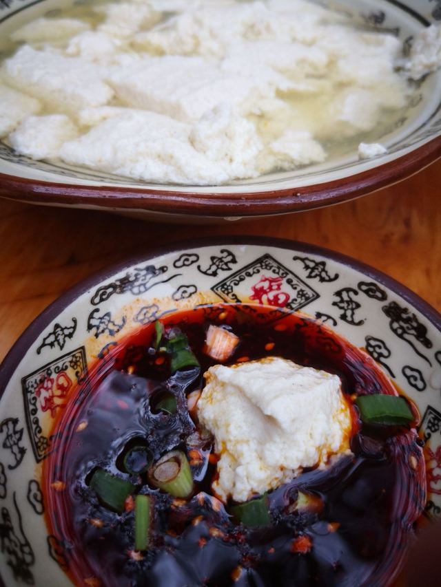 #蜻蜓点水吃逛青城,张醪糟,马煮血,刘荞面,建福宫的盖碗茶# 老妹儿从北京到成都,著名景点和美食基本都吃了,这盘有一天时间,干脆走远点,去看似传统旅游路线却又是新玩法的逛吃青城 吃张醪糟,就一定要吃马煮血。一甜,一咸搭配,经典。 走进店内已经是饭点了,里里外外全部坐满,附近的当地人都来这里吃午饭。两个人要了一份血,要了一份豆花,两碗米饭。 肥肠血旺作为当家菜自然是最推荐的,血嫩气,肥肠越嚼越香,里面的脆黄豆有了辣椒汁的浅浅一泡更有味道,而且继续保持酥脆的口感,真不错。血旺拌饭,真的,真的,我又吃了两碗饭。 结账的时候看到老板做的烧椒,看起来很好吃的样子,决定下次来一定可以再下两碗米饭。 这盘的豆花没有去年吃的安逸。