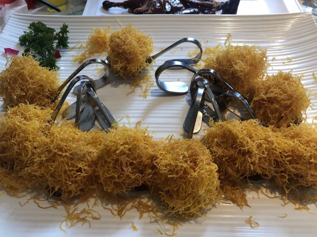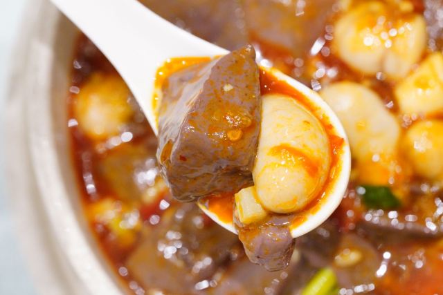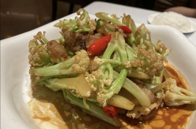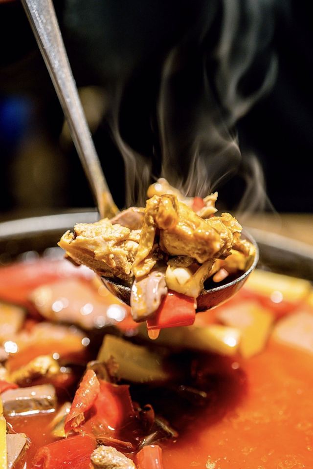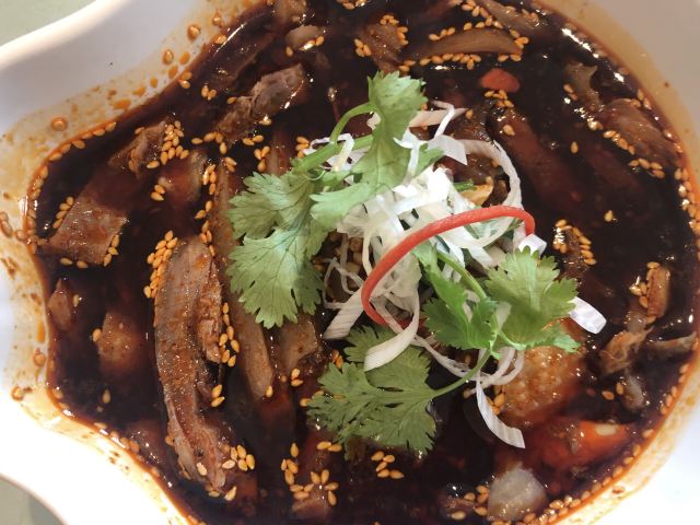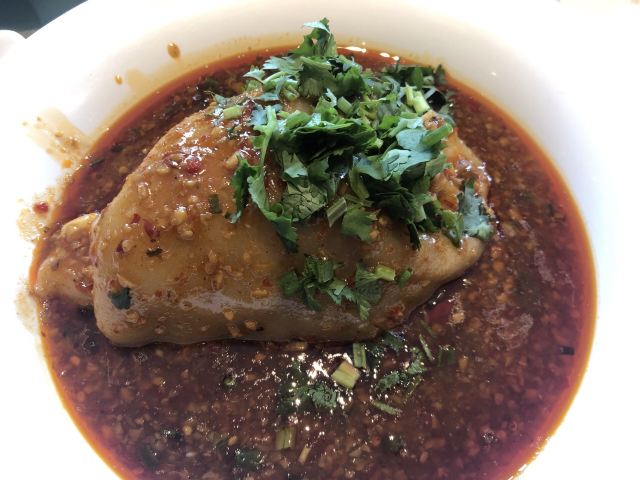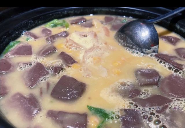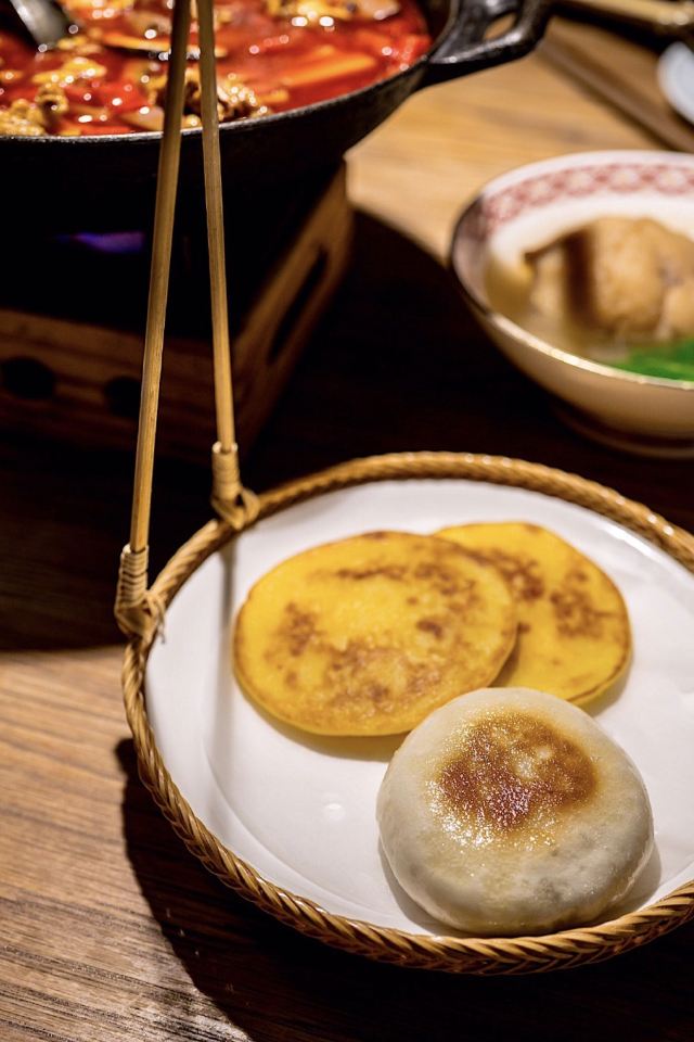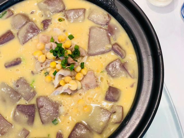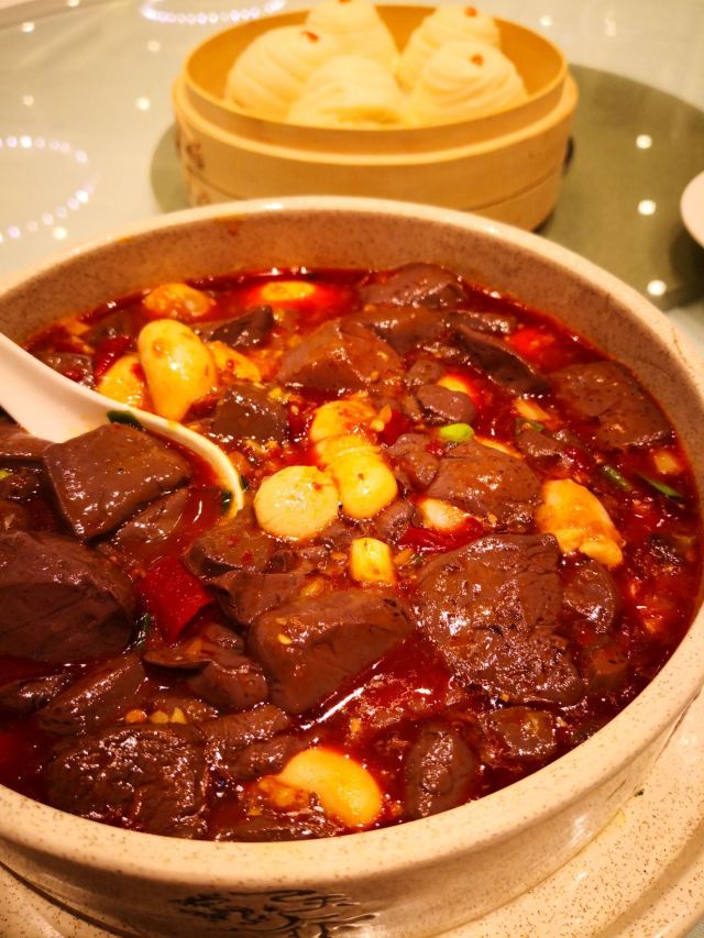 MA'S KITCHEN现在人气很旺的一间川菜馆,据说也是排队排到丧心病狂,想说晚点去2点半结束我们快2点来,果然前面只用排几个人。这间店据说是创始人在路边卖血旺起家的,新加坡没有血旺于是这次打算吃个够点了两份。 碗碗旺这个口味不太重,轻微的麻上面还淋着炸过的豌豆脆脆香香的,另外一份鸡血旺这个味道会偏重口,味道非常入味,鸡肉被切的小小块,这两个血旺都好吃。 还点了一个名字好玩的菜叫爆发WHO,来自四川民间宴席的经典丸子蒸菜。玉米粑和老面红糖锅盔也都不错,就是可惜自己只有一个胃。