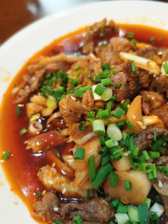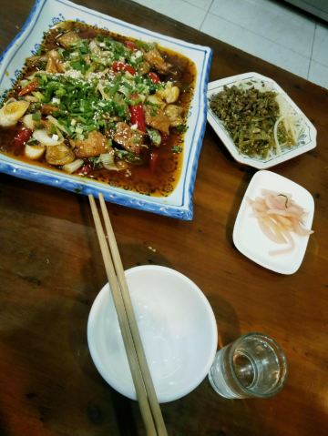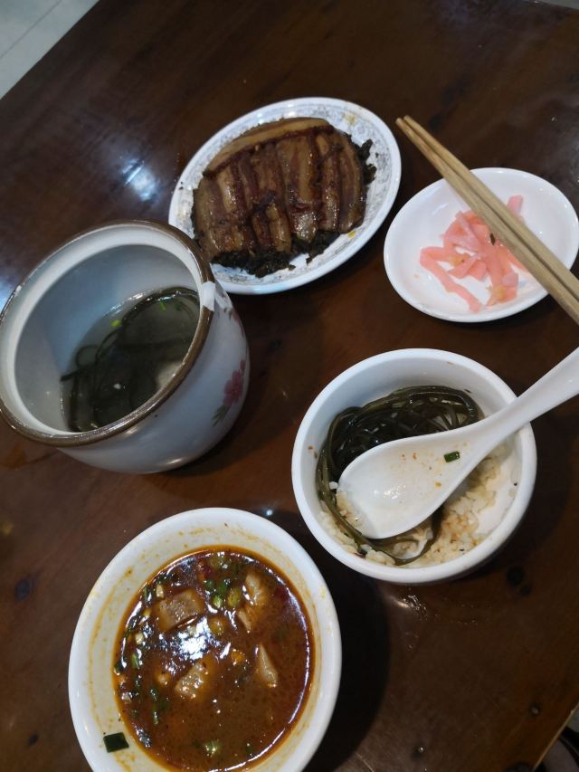 旅行愉快这家店绝对是值得打卡的地方,俗话说大隐隐于市,古朴不大的门面沿街而立,带有历史气息的陈设,永远搽不净的带有油光桌椅,都有一种带入感,让你在品尝美味的同时将你带回古老的过去!当地原住民的日常美食之地,也是旅游观光自由行人们的必尝美食! 推荐在凌晨或深夜的时间去品尝,因为那时沿街人车都很少,年代带入感更强烈! 肥肠必须点,非常香非常香非常香! 口感的评分4分就是因为米饭扣分,大米饭真的不敢恭维,毕竟我是东北人,店里的大米饭真的口感非常差,建议店主更换大米品质品牌,哪怕贵一点,但是整体的口感就不是提高一两个等级!