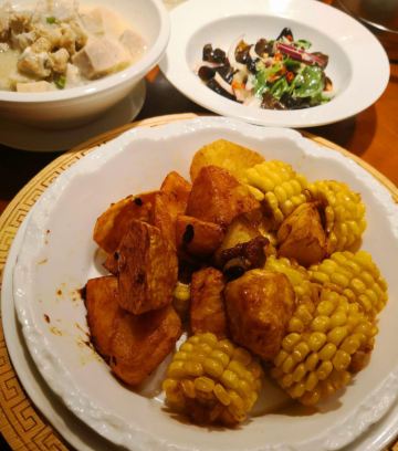 酒店的大厅环境,早上到的时候大圆桌边坐满了人,服务员推着推车在里面穿梭,很热闹,最爱的就是三丁包 里面有肉丁 笋丁, 一口咬下去 卤汁就流了出来,很香很好吃 ,烧卖做的皮薄油多,饭米粒浸泡在里面很好吃,鱼汤面就是中规中矩的感觉 比较偏淡 桌子上有盐和胡椒粉可以自己添加,除了包子, 面条, 馄饨 还有一些中式餐点 稀饭 饼 糕点, 很多很多,在这里吃早饭能感受到不同的风味 会觉得很满足,非常值得你去品尝。