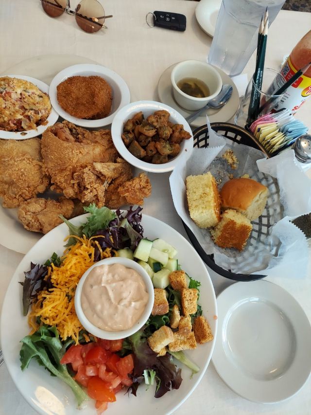旅游度假美食南方风味 🥘菜单亮点 经典的南部“肉丸三味”:炸鸡,格雷比,马卡罗尼和芝士,可乐绿色,炸薯条等多种多样。 第一口客人提供的免费锅likker(蔬菜汤)+玉米饼松饼真的很好吃。 12个肉桂卷不到5美元♡