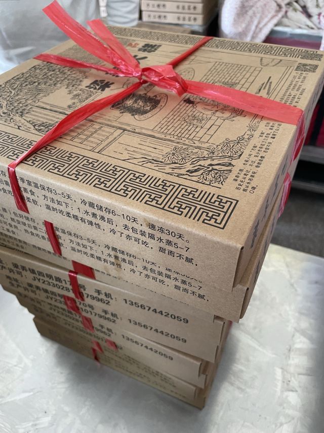 俞记梁弄大糕,搜了下这家据说是最有名的,就来了,门口空地可以免费停车的。 梁弄大糕 黑米大糕 买了白色原味+黑色黑米双拼 3盒,亲戚买了20盒,老板说我们买了多算我们25元一盒。先买了一盒吃了觉得软糯,也不太甜,挺好吃的,于是就买了。