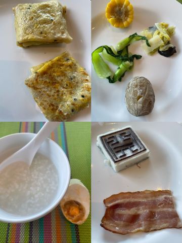 水煮虾,豆花,梁弄大糕,荷包蛋,红薯,蛋饼,培根,咖啡,蛋挞,小馄饨,葡萄