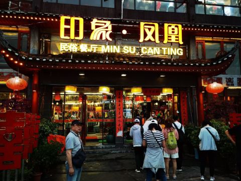 凤凰苗家血粑鸭,苗家酸汤鱼,酸汤黄骨鱼,砂锅口味鸡,生煎牛肉,家常豆腐,干捞粉丝,翅汤生态菜,铁板牛肉,蒜泥鸭脚板,血粑鸭,酸汤鱼