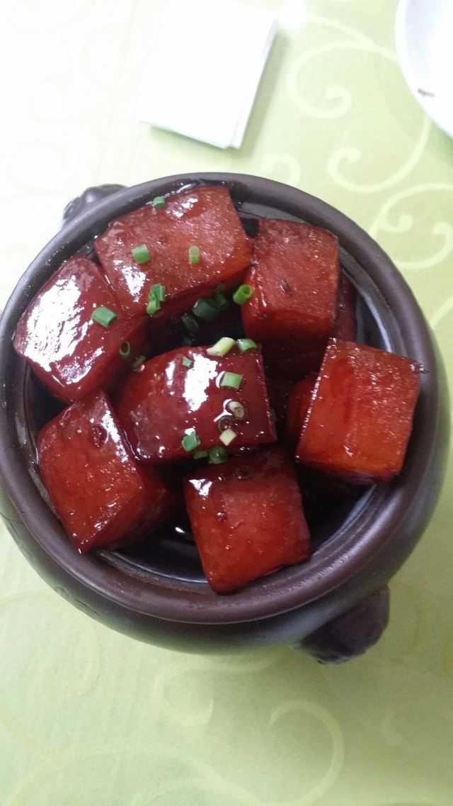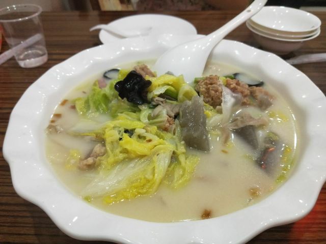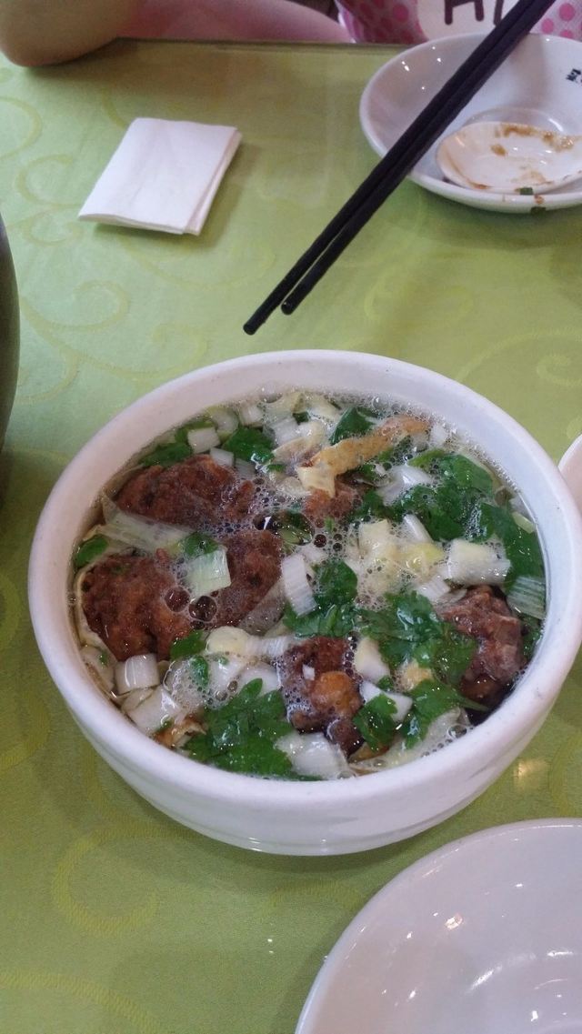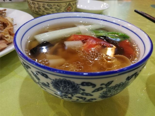 bluecrane【位置】在洹园的东门边,很适合当地人逛完洹园,出来吃一顿正宗的安阳菜。公交11路能到。 【环境】进门左手是大堂,右手是包厢。中间有个桌子在炸灌肠。 【服务】大姐比较实在,我一个人,给的点菜的建议也是比较中肯。但是建议店家也可以灵活一点,比如出个小份、半份之类的。我倒是愿意隔壁桌点什么,我加半份,也不费厨师单独起锅了,但是服务员说不行。 看到在炸灌肠,问问师傅是什么、怎么做的,问了两句,师傅竟然说不知道…… 【口味】 |彰德扣碗^因为我一个人,所以只能点一个扣碗,就吃不了别的了。一个扣碗有六碗。 肉丸子很q弹,掉在桌上真的会反弹哦。 鸡肉,嫩嫩的,但是裹着面粉,和肉丸子长得像哥们了。 排骨:看外套,都是一家子的。 粉皮(皮渣):吃的时候不知道是什么,后来几天才知道,这就是皮渣,和皮真没关系。就是凉粉的感觉,没啥特别味道。 甜饭:作为南方人,这一碗是舔干净了~ 腐乳肉片:适合吃两三片,再多就觉得腻了。 老实说,这家店扣碗做得不错,比另一家老字号只有四碗还做得没啥味道强太多了!没吃完,还特地打包了。