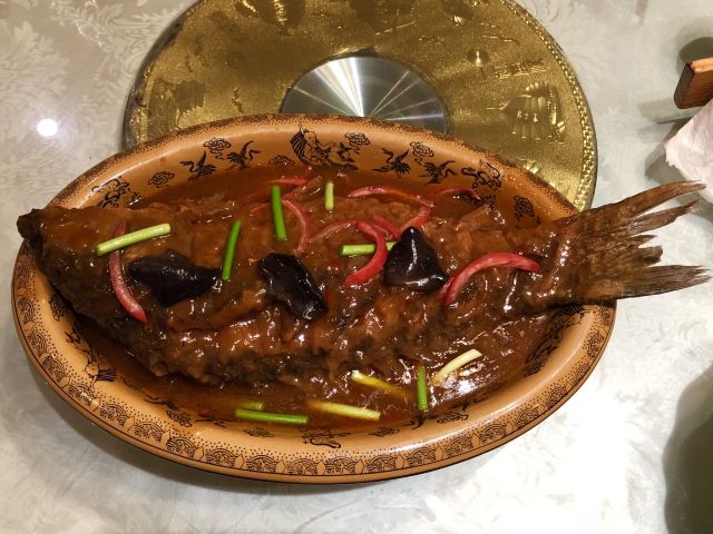 安阳老字号的本地口味餐厅,有好几家分店。这次随团参观殷墟博物馆新馆前,来到这家彰德路店用午餐,因为提前预约了,所以到饭店时,菜上得很快,为下午的博物馆参观争取到了宝贵的时间。整个席间,以安阳传统本地菜为主,也捎带了一些河南其他地区的特色美食,安排得相当丰盛。道口烧鸡时河南的特色名菜,清蒸鲈鱼是从上海迁来的纺织厂职工带来的南方口味,粉浆饭是安阳本地的特色,酸咸口有点惊艳。餐后坐旅游大巴,几分钟就到达殷墟博物馆新馆,非常方便。