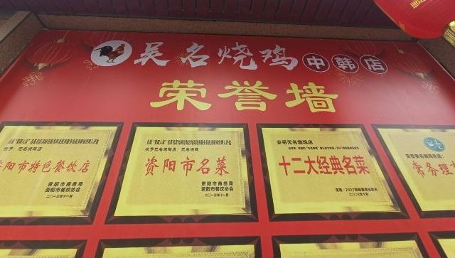 YoYo_6N1F7Q4S吴名烧鸡以前是安岳圆觉洞门口一家历史悠久、口味传承的老字号,近年来在安岳及其周边地区的中餐市场上备受瞩目。无论是在总店还是各个分店,吴铭烧鸡的味道始终如一,烧制的鸡肉嫩滑、入味、口感极佳。这家店最主要的菜品就是烧鸡,而且采用的是自有良种土鸡的原料,质量上乘。一口又嫩又香的烤鸡肉,配上青椒独特的清香味,让人食欲大增,回味无穷。 虽然吴铭烧鸡在中餐餐厅的装修上并没有太多的惊喜,但是这家店在制作工艺和食材选取方面十分用心,秉承这份精神始终如一,让这家老字号始终保持其美食的正宗性和口感的美味性。此外,这家店服务贴心而周到,让人感觉倍受关爱。 总体而言,吴铭烧鸡是安岳非常流行的烧鸡店,因其口味传承和用心制作而闻名于世。如果你想品尝地道的烧鸡,不妨来这里一试,相信会给你带来一次难忘的美食之旅。