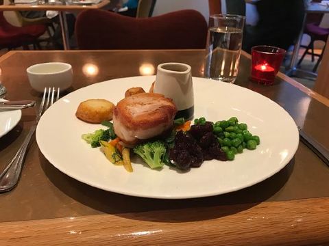 作为一家小型轻奢酒店的餐厅,这里算做的不错的,里面的牛排做的不错,浓汤也很好喝,做的鱼块很好吃,鸡肉不错,有点点盐焗鸡的味道。