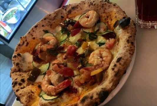 这家店开的很晚,因为想吃夜宵,就看到这家店开着,就来吃了,味道马马虎虎,主要肉类都是生的,披萨很厚,入口有点硬硬的,不太适合国人的胃。