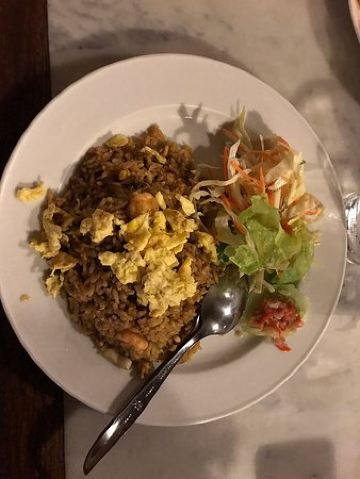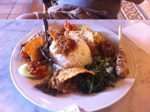 餐厅位于库塔区中心,是库塔最古老和最出名的餐厅,于1969年创建。在这里你可以品尝到多种印尼名小吃。这里的印尼花生酱沙拉,印尼式炒饭,印尼拼盘饭都很出名。 这家当地餐厅是一座临街的三层建筑,饭菜价格便宜又好吃,不止游客喜欢,当地人一样追捧。泰式咖哩鸡(Nasi Campus)、印尼炒饭(Nasi Goreng)和泰式酸辣海鲜(Tom Yam)汤是这里的特色菜,另外还有多种蛋糕、美味的自制椰子冰淇淋、鲜果汁、Arak Madu(自产米酒,混合蜂蜜制成的饮料)。