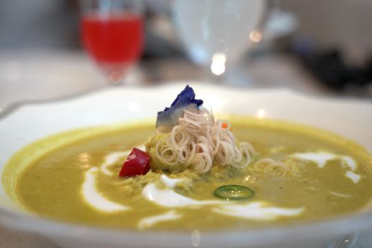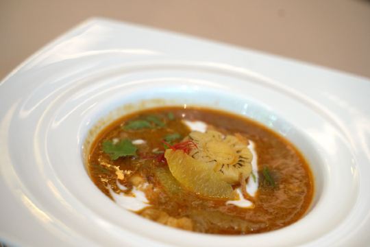 沙爹猪肉,马赛鱼汤,泰式炒河粉,草莓属,酿鱿鱼,咖喱牛腩,玫瑰荔枝冻,咖喱蟹