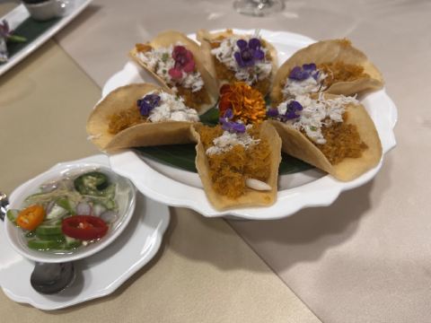 属于泰式皇家料理,食材非常讲究。而且,颠覆了我对泰餐的认知。原来,正经的泰国菜是这样的!!每一道菜,都不会踩坑,不认识英文菜单也ok,盲点没问题。 缺点是不支持支付宝微信,只能现金或信用卡。 摆盘精致,口感一流,环境优越。流口水~~~~