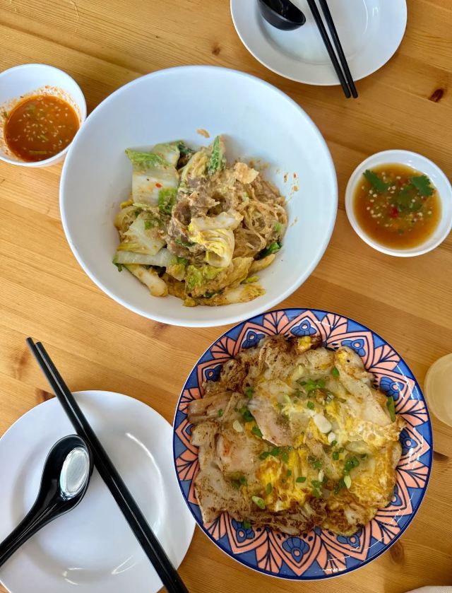 烤扇贝,泰式炒饭,蚵仔煎,泰式鸡肉炒粿条,烤猪颈肉,蒜香粉丝虾煲