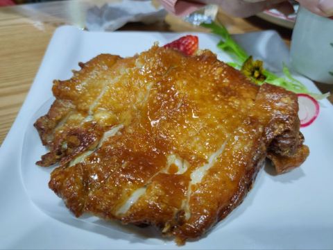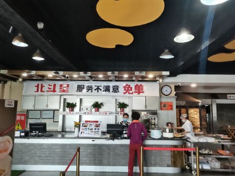 Beidouxing (baihua)|神仙鸡^分大份、小份,小份有7块,外焦里嫩,尤其是外皮太酥脆了,一般香酥鸡外皮都没这么脆,里面的肉也很入味,颜值和味道并存的佳肴! |白洋淀石锅嘎鱼^三条嘎鱼肉质鲜嫩,放了粉条,鱼汤还可以泡饼,汤带点酸汤味儿很好喝,粉条浸足汤汁特别好吃,最后连汤带鱼加粉条和饼全干掉了,热乎乎一锅太爽了! |白洋淀虾肉藕饼^一般藕盒放肉馅,这个里面放虾肉很创新,藕的清香加上虾的鲜美,味道好极了,而且藕的清热效果和虾的温补作用相辅相成,营养又健康! |骨渣丸子^感觉一般,没尝出什么特色。 |沙煲养生时蔬^有杏鲍菇、白菜、菠菜、茼蒿等蔬菜,味道还可以,就是作为素菜,油放的有点多。 服务: 从等位倒水、落座赠送水果到点菜、买单,处处体现了服务的细节,上菜很快,给服务点赞!