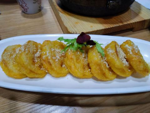 YoYo_8W2G4D4V经朋友推荐 来到这里 豪气的两侧楼11:00已经坐满了 服务员穿梭在人群中 移动速度很快。点了几个推荐菜 骨头 渣丸子相当于四喜丸子 有点咸 炸鸡和茄子还不错。米饭是香米 可惜我不喜欢香米 免费果盘的西瓜特别甜 总体推荐。
