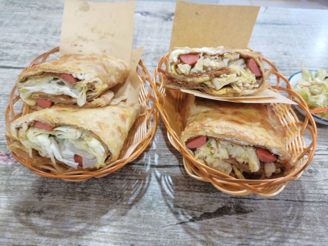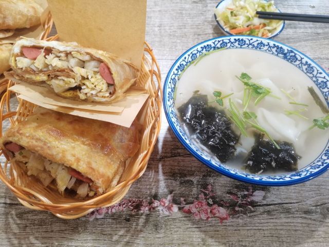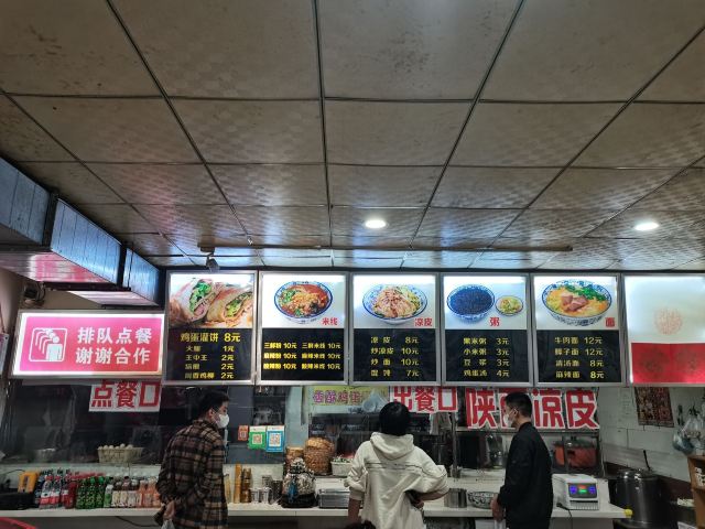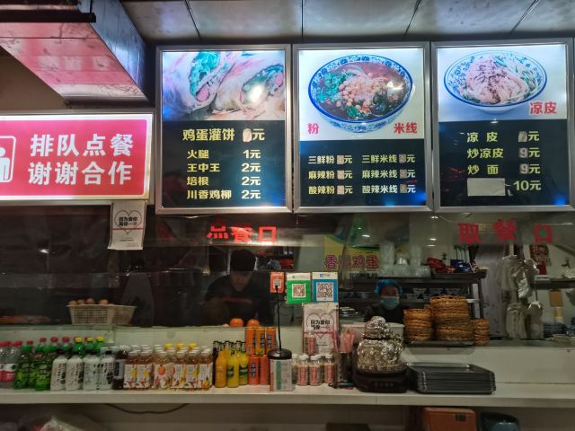 香酥鸡蛋灌饼,西安凉皮,鸡柳灌饼,培根鸡蛋灌饼,馄饨,酸辣粉,紫米粥,黑米粥,鸡蛋汤,豆浆,凉皮