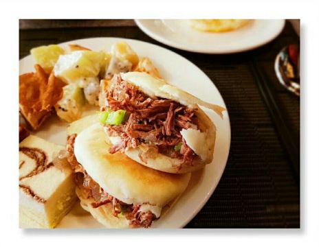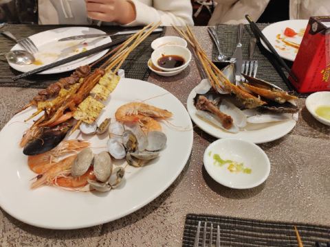 提供中、午和晚餐的自助西餐厅面积不大,菜品品种不多,但口味还不错。推荐扇贝、鲍鱼、三文鱼和自制酸奶,想吃的好的话要赶早。