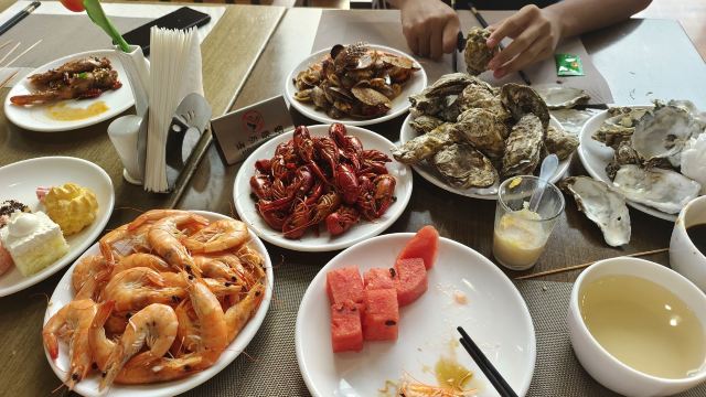 各式海鲜,特色铁板烧,烤羊肉串,鲜啤,自助餐,小龙虾,烤鸭,烤牛肉,巴西烤肉,蒸螃蟹