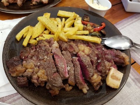 牛扒 牛扒的肉质鲜甜,细腻,厚度适中,一个人吃下都非常饱满,不想吃其他东西了,点了红酒,更为完满,满足非常。健健康康快快乐乐