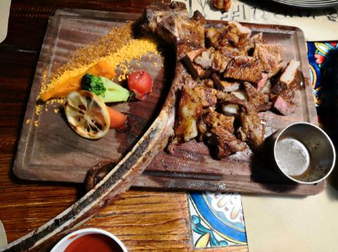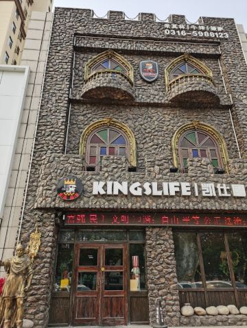 凯仕国王(天祥路店)在天祥路与益众街交口西北侧,书香苑小区东门往南。店内装修的比较有特点,比较适合年轻人吧。 一楼是大厅,二楼有包间。总体感觉神神秘秘的 可能是因为赶上停水,上菜比较慢 牛排,肉质比较嫩,火候也很好。个人感觉有点咸 披萨,大个的虾仁在上面,虾仁口感不错,饼的口感一般般吧 水果沙拉,可能是冰箱里刚拿出来的,很冰,大冬天吃还是有点冷