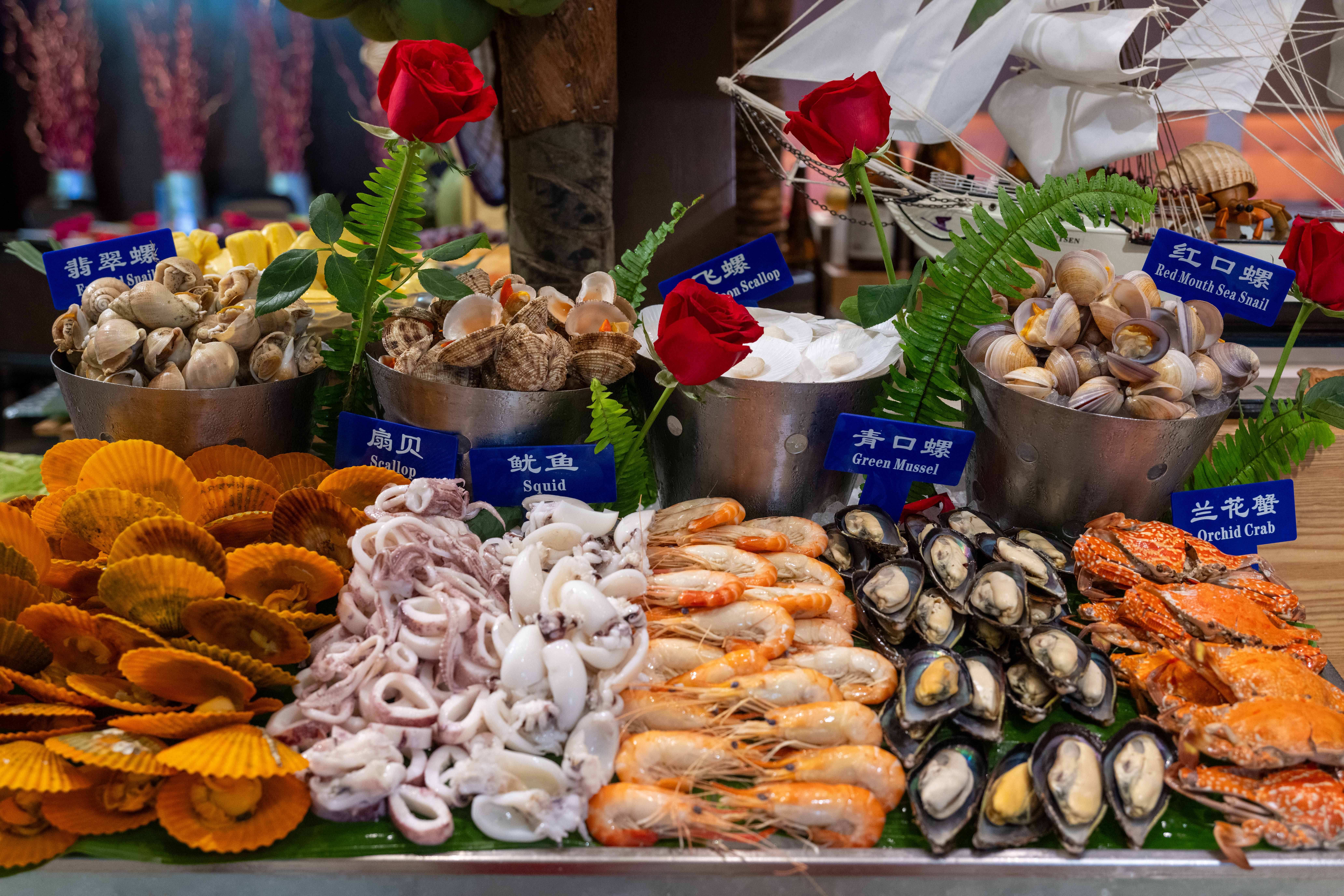 披萨,海鲜类,香草草莓冰淇淋,刺身,寿司1,榴莲芝士蛋糕,海鲜,小龙虾,冬瓜薏米煲老鸭汤,红烧狮子头,羊排,美国肉眼牛排,香煎鱿鱼筒