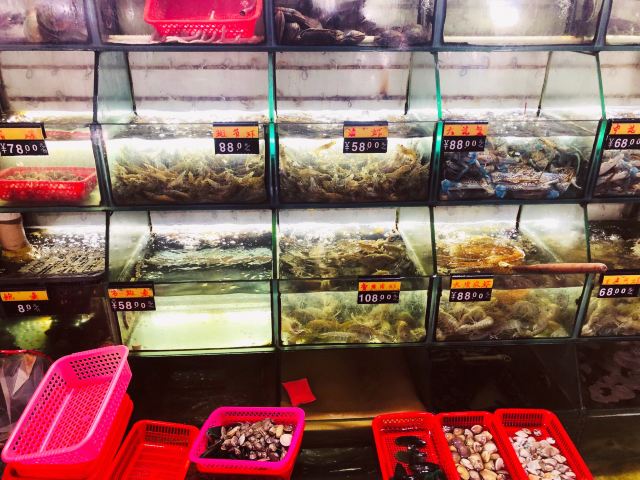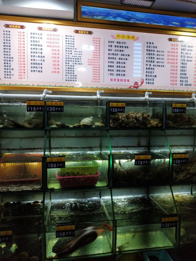 椒盐皮皮虾,招牌香辣蟹,清蒸石斑鱼,爆炒鱿鱼,炭烧生蚝,炒河粉,粉丝扇贝,贝壳大拼盘,椒盐琵琶虾,海鲜粥,黑蒜烤生蚝,柠檬秋刀鱼,番薯叶,白灼红虾,白灼西兰花,西芹炒肉丝,海鲜