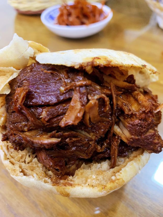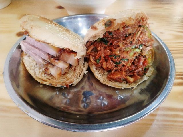 这家坛子肉夹馍基本上就是被北京的摩友门炒起来的,基本上去北边跑山都会来这里吃饭,单买坛子肉夹馍是12一个,感觉还是直接来一斤自己夹着吃比较过瘾,这家店人没有总店那么多,即使到了饭点也不用排队,值得来尝尝。