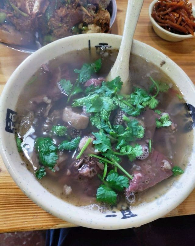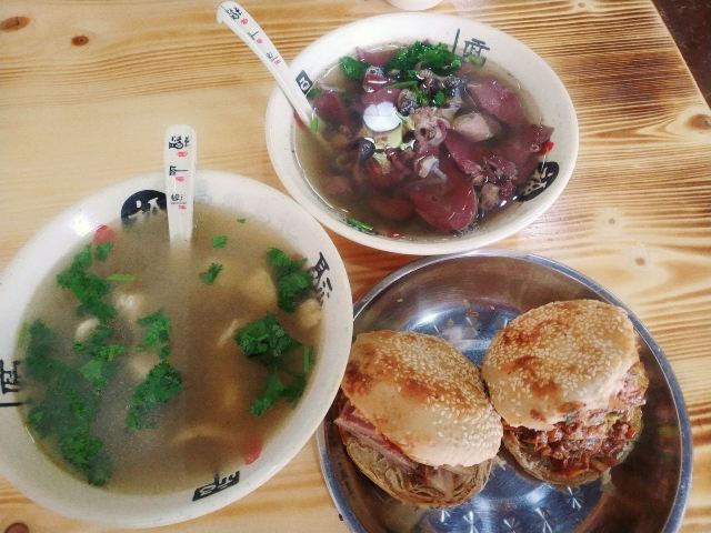 位置挺好找的,在马路边,门口停车位不多,中午11点半到的,人不算太多,还有位置座,点餐时也没有排队,直接点餐,羊杂汤里面料很多,肺头很多,肠不多,坛子肉夹馍好吃,油也很大,底部一直在滴油,烧饼夹肘子也不错,价格合适!爱吃肉的人,推荐来尝尝,吃完了很满足!
