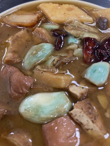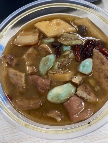工作日的中午点的他家的外卖。卤煮火烧和炒土豆丝、米饭。感觉比堂食划算。非常适合中午工作餐。很喜欢卤煮,味道很正,看汤汁也感觉很干净。比起很多家,他家的卤煮味道不是很重口。虽然是外卖,但给的量和堂食一样。吃的很饱。