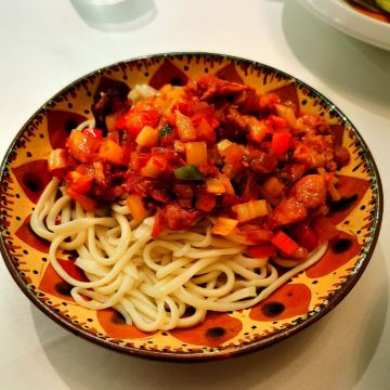【环境】 ✅大厅✅阳光房✅露台 三种不同风格协调融合 🔸露台上木地板、沙发卡座、喷泉置景 打造出一方惬意松弛的舒适天地 🔸阳光房让我想起友人的巴厘岛婚礼现场 🔸大厅是标准的西餐厅布置 镂空墙面打造的半包间呼应洞学馆主题 美得独具特色 【口味】 🌟波斯头盘 「煎虎虾甜玉米」 烹饪灵感来自于波斯煎烤虾 新鲜的虎虾虾身去壳 让丰富的香料充分的浸入Q弹的虾肉里面 味道和口感让人记忆深刻 吃起来也非常优雅方便 🌟豪横主菜 「低温牛肋排」 这块牛肋排在烘烤之前享受了尊贵的礼遇 先将丝绸之路上各种名贵的香料撒遍全身 然后进行揉搓式舒适按摩 最后在恒温64度的真空袋里沐浴8小时 一套流程下来 肉质入口软烂多汁 多种香味层次分明在嘴里丰富变幻 辅以清爽的萝卜丝可以解除肉脂的油腻 搭配的土豆泥爽滑细腻 保留了很小颗粒的土豆原始口感 🌟西域主食 「过油面」 我觉得这是一道结合了陕西新疆罗马 三地面食文化的精髓 面条是特别劲道弹韧的口感 羊肉+番茄+青椒+黄椒+木耳 五色斑斓色香味一应俱全 🌟奢华甜品 「莫凡彼冰淇淋」 号称冰淇淋界的爱马仕 价格和品质都碾压哈根达斯 我今天选的是巧克力口味 来自瑞士的黑巧味道特别浓郁 冰淇淋球里还有很多巧克力碎 结合外层的酥脆蛋卷碎 绝对是巧克力控们的最爱