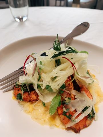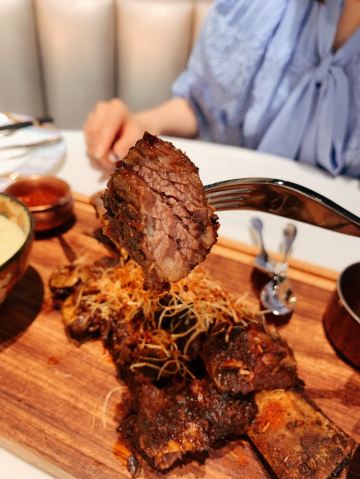 李青娴Starry【环境】 ✅大厅✅阳光房✅露台 三种不同风格协调融合 🔸露台上木地板、沙发卡座、喷泉置景 打造出一方惬意松弛的舒适天地 🔸阳光房让我想起友人的巴厘岛婚礼现场 🔸大厅是标准的西餐厅布置 镂空墙面打造的半包间呼应洞学馆主题 美得独具特色 【口味】 🌟波斯头盘 「煎虎虾甜玉米」 烹饪灵感来自于波斯煎烤虾 新鲜的虎虾虾身去壳 让丰富的香料充分的浸入Q弹的虾肉里面 味道和口感让人记忆深刻 吃起来也非常优雅方便 🌟豪横主菜 「低温牛肋排」 这块牛肋排在烘烤之前享受了尊贵的礼遇 先将丝绸之路上各种名贵的香料撒遍全身 然后进行揉搓式舒适按摩 最后在恒温64度的真空袋里沐浴8小时 一套流程下来 肉质入口软烂多汁 多种香味层次分明在嘴里丰富变幻 辅以清爽的萝卜丝可以解除肉脂的油腻 搭配的土豆泥爽滑细腻 保留了很小颗粒的土豆原始口感 🌟西域主食 「过油面」 我觉得这是一道结合了陕西新疆罗马 三地面食文化的精髓 面条是特别劲道弹韧的口感 羊肉+番茄+青椒+黄椒+木耳 五色斑斓色香味一应俱全 🌟奢华甜品 「莫凡彼冰淇淋」 号称冰淇淋界的爱马仕 价格和品质都碾压哈根达斯 我今天选的是巧克力口味 来自瑞士的黑巧味道特别浓郁 冰淇淋球里还有很多巧克力碎 结合外层的酥脆蛋卷碎 绝对是巧克力控们的最爱