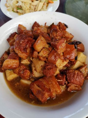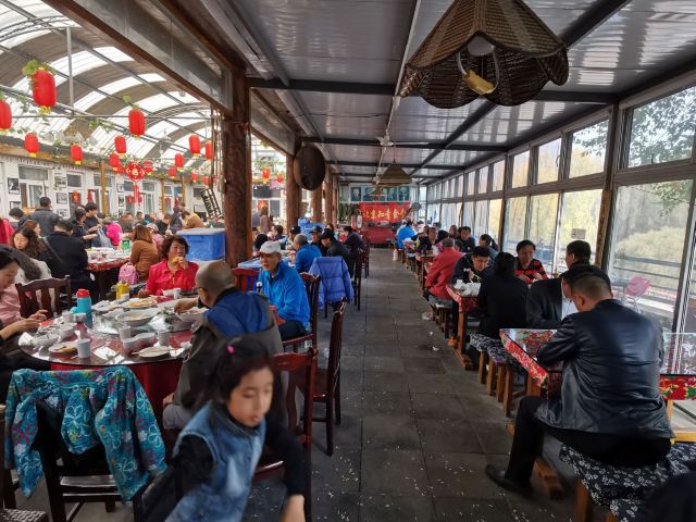 [薄荷]环境: 位置很好,在进出延庆百里画廊的必经之路上,刚好在岔口上,紧邻滴水壶景区。门口可以停车,也可以停在下面景区停车场走上来。饭点的时候人比较多。 [服务铃]服务: 顾客多,服务员少,服务一般。上菜倒还比较快。 |小葱摊柴鸡蛋^好像真是土鸡蛋,反正挺香的,焦黄。 |肉炒干豆角^正宗东北菜,就是豆角干不够干,味道还不够浓郁。 |红烧肉^这个是招牌菜,事先大锅炖好的,很烂糊,量也比较大。 |大碴粥^还是最推荐这个,正宗的东北味,别的地方真没有。好多年没吃到了。只是里面没有用芸豆,小缺憾。 总体来说性价比不错,又挨着景区,值得品尝。