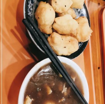 来北京出差的第1顿早餐,正好酒店附近有一家刘东来胡辣汤。环境虽然没有西安的舍外那样的温馨和舒服,但是胡辣汤的口味还是蛮让人感觉与众不同的。 水煎包的口味也不错,馅儿很香,刚刚煎过的油香面香。