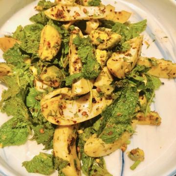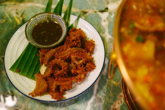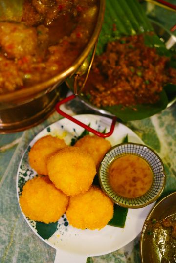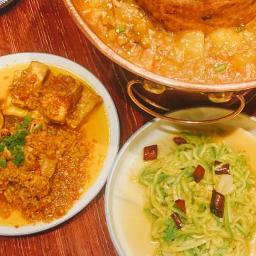 枫行Maple1️⃣[土司铜锅油焖鸡] 🌟开业之初就一直好评满满的土司铜锅油焖鸡。 🌟容器是一个长得很像老北京的铜锅,内芯加热,四周盛满了好吃的土豆泥和各种肉类食材。 🌟我喜欢油焖鸡,鸡肉是大块的鸡腿斩块,裹着已经煮成泥的土豆,无论是直接吃还是拌米饭或者拌米线,都很美味。 🌟随着加热,辣椒的作用也越来越明显,这个时候加入饵丝或者饵块进去,搅拌一下,就从一道菜变成一道饱腹的主食。 2️⃣[黄金虾饼] 🌟每次必点的黄金虾饼,厚厚的一个,外酥里嫩,沾一点点酸梅酱,热乎乎的清甜。 3️⃣[蒜香卤味拼盘] 🌟傣家的卤味也是一绝。去骨鸡爪、弹嫩虾球、清甜藕丁、绵软土豆、肥厚肥肠、多汁豆腐、香辣牛肉,可以任选四种组成拼盘,味道由辣由香,也是干饭一把好手! 3️⃣[油爆猪皮] 🌟听上去很腻,但其实非常软糯Q弹。一定要趁热吃,每一口都是胶原蛋白。