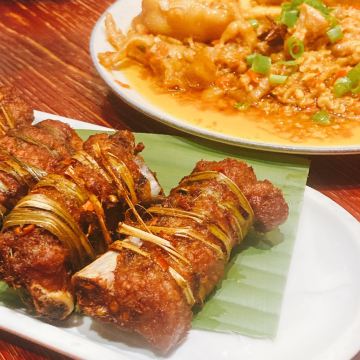 HUO SHAO YUN DAI GU CAI GUAN JING AN QIAO DIAN吃得好过瘾 难得遇到这么正宗的云南菜,哦不,是傣家菜 火烧云名气太大了,整栋楼都不景气唯独这家门口长年排长龙 [薄荷]环境: 装修风格有典型的傣家云南风格 座位稍微有些拥挤,因为人气太旺,也是一座难求 [服务铃]服务: 服务人手多,上菜响应需求都很快 「油焖鸡」绝对是北京no1,鸡肉不是重点,重点是锅里的土豆泥,特别入味,绝对米饭杀手 「米酒」好喝,清爽,可以打包 「虾饼」酥酥嫩嫩 「蒜香卤味拼盘」可以拼很多种种小菜,有一丢丢辣 「炒小瓜」好吃,蔬菜清新爽口 「铜锅牛蛙」容器造型别致,牛蛙肉肥厚 「鸡肉饵丝」很正宗的饵丝 「香茅草炸排骨」油炸过但不油腻 「豌豆粉」配油条的搭配很有特色 店里的很多食材都是云南空运 味道也保证了云南正宗本味 是美好的就餐体验