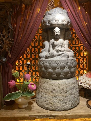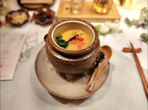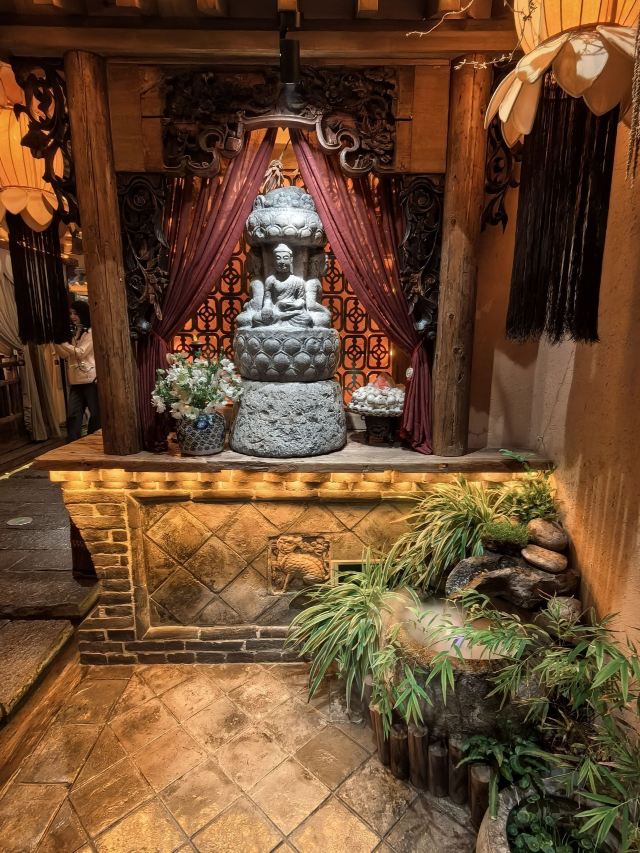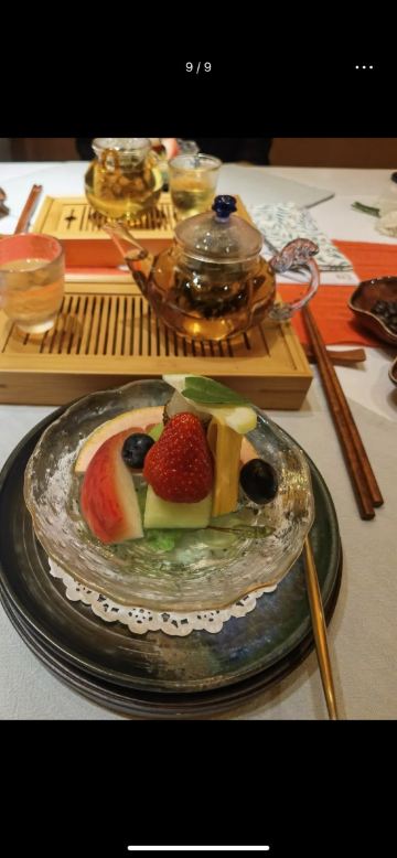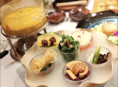 YoYo_4Y2T2N1O叶叶菩提主打高端素食,从环境到服务、食材都是极好的~ 餐前会带着逛一下整个叶叶菩提,前门店共两层,每层10个包间左右,环境非常仙非常赞,可以说叶叶菩提是一座小型的民营博物馆,与其说是看店内环境,不如说是参观博物馆,老板是山西人,所以店内各处都是古玩古董老物件,木雕、石雕、门墩、匾额..应有尽有! 白招牌佛跳墙 保持7年的菜品,一直在做,有各种菌类,汤底浓郁。 亡铁板羊肚菌 这个菜真的很棒~是把羊肚菌压碎烹制的,口感好。 玉米浓汤水晶锅 大菜是火锅,有很多涮品,主打养生,还有四种调味酱汁,纯蔬菜打汁,双椒汁、菠菜汁、山西陈醋和麻酱。 二山西特色面食 主食是刀削面和山西花馍。 彩蔬沙拉很丰富,有蓝莓、坚果、水果等,好吃3甜品是酸奶火龙果燕窝吃到了很多种类的蘑菇