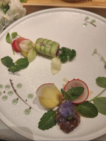 今天来打卡北京素餐排名第一。必须说充满了一些小惊喜。不论是拍照打卡还是单纯的享受食物都是相当不错的去处。店内外都非常有古韵,在北京这样喧哗的地方,难得一见的给人一种安静的感觉。首先,榻榻米坐垫是艾草加热垫给女孩子用很好。卫生间非常干净,连马桶里面也撒了新鲜玫瑰花瓣。整个环境仪式感满满。而且绿植很多,有自己的私密空间。味道也很爆满,吃到有点撑了。还有一点必须点出,上餐的器皿都是根据冷热餐有温度调节的。可以感觉到很多细节和用心。服务的小姐姐也是人美声甜。有时间一定要试试。