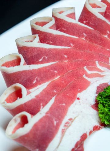 【不比肥牛】同样也是符合清真标准的食材,肉质纹理漂亮,肥瘦比例恰当。入口非常新鲜嫩滑,记得不要煮太久哦!【鲜切牛胸肉】适合和我一样爱吃肥一点肉的盆友。别小看这肥肉部分,一两牛胸一两金,最肥的地方涮出来是最好吃的!脆的同时又带着肉香,根本停不下来!140