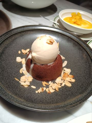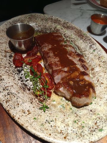 推荐一下香煎海鲈鱼吧,鱼肉剃刺脱骨,味道鲜嫩。 牛排是四分熟的。 店装修砖红色温馨风格,上菜速度快,在中国红街旁边的美林大厦一层,工体东路。