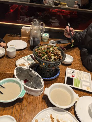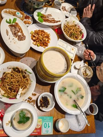 服务非常好 二楼客也是很满的 本来同事推荐去另一家吃烤鸭的 结果去了 说是最少等2个小时还能到 外面黄牛直接说 他带我们去 只要等2桌 这烤鸭也不是非吃不可的 然后这家外面也在喊吃炸酱面 烤鸭 我们就抱着试一试的态度尝了一下4人套餐 298 非常的性价比 烤鸭套餐量挺多的 然后鸭架汤挺鲜的 味道也挺好的 推荐 原谅我吃完才想起来拍照😂😂