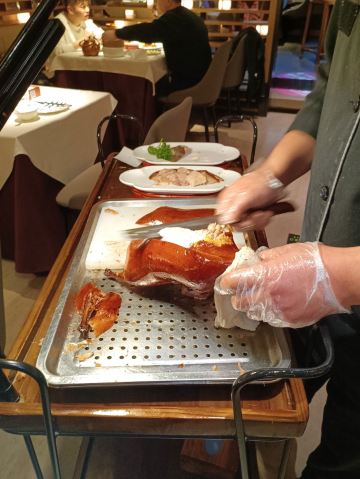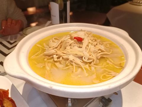 今天又携夫人和爱女来大望路大鸭梨大块朵硕。西葫芦丝是闺女每次必点,喜芥末味儿的可以试一下。凉爽可口又略带芥辣,给人一种味蕾上的刺激。鸡汤笋丝是我们第一次尝试,味道咸咸酸酸的,有江南菜的风格。回锅土蒜苗炒肉是我第一次点,以前经常点他们家的麻婆豆腐。这次试试新菜品,肉片肥瘦均匀,青蒜苗炒得火候正好。连平素不吃蒜的女儿都特别喜欢,下饭首选。从疫情防控措施放松以后,我们已经来过十几次了。过去经常去大董,四季民福。现在觉得大鸭梨的菜品不比他们的差,而且有过之而无不及。来北京的朋友没必要偏要去四季民福排队,也更不值得去大董挨宰。这里的服务也非常贴心周到,我们很满意。朋友们有机会也来享受一下吧! 环境非常优雅,居然放着三十年代的西洋乐伴餐。感觉帝国主义终于为我服务了,哈哈哈哈哈。