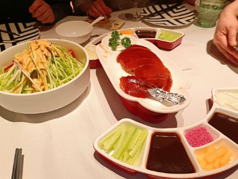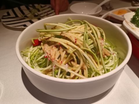 方向盘叔叔今天又携夫人和爱女来大望路大鸭梨大块朵硕。西葫芦丝是闺女每次必点,喜芥末味儿的可以试一下。凉爽可口又略带芥辣,给人一种味蕾上的刺激。鸡汤笋丝是我们第一次尝试,味道咸咸酸酸的,有江南菜的风格。回锅土蒜苗炒肉是我第一次点,以前经常点他们家的麻婆豆腐。这次试试新菜品,肉片肥瘦均匀,青蒜苗炒得火候正好。连平素不吃蒜的女儿都特别喜欢,下饭首选。从疫情防控措施放松以后,我们已经来过十几次了。过去经常去大董,四季民福。现在觉得大鸭梨的菜品不比他们的差,而且有过之而无不及。来北京的朋友没必要偏要去四季民福排队,也更不值得去大董挨宰。这里的服务也非常贴心周到,我们很满意。朋友们有机会也来享受一下吧! 环境非常优雅,居然放着三十年代的西洋乐伴餐。感觉帝国主义终于为我服务了,哈哈哈哈哈。