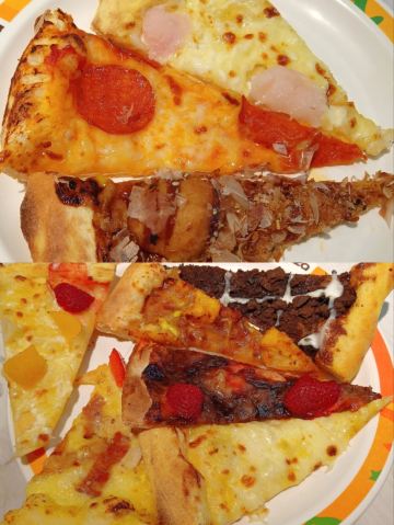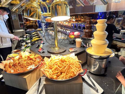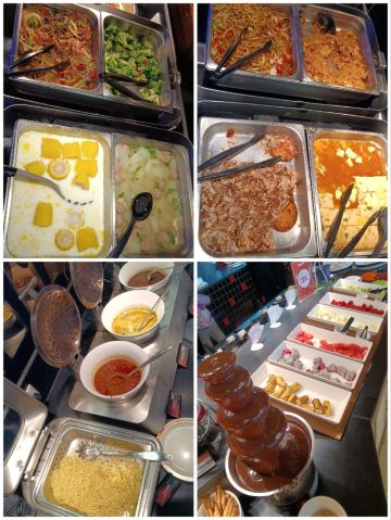 比格是我的童年欢乐场,10多年没吃了。 现在是10种比萨和各种炸物的天堂,还有意面沙拉冰激凌,八种菜品,一些水果。 自助餐一直会续,不会空。和十年前的印象没啥区别。 座位挺多的。大部分是四人位,用餐学生和附近老人比较多。 服务员挺勤快一直在补充餐品和收盘。