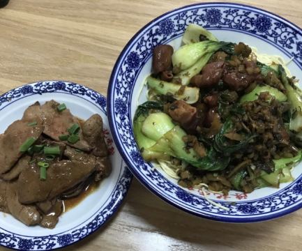 larry[薄荷]环境: 门脸小,里面还挺大的,而且门口看不出是否在营业。 进门后里面熙熙攘攘,拼桌,等位,吵杂,人挤人的。老板不停招呼忙碌,秩序不错。不乱。 正常排号,一般很快就排到。 [服务铃]服务: 江浙风格的服务,周到,热心,生活化,谈不上有多专业,就像邻家小馆一样。 |白斩鸡^ 我本意不太爱吃鸡肉,点了之后吃了一口,算很不错的了。 |糖醋小排^ 肉质很好,有点甜腻。 |雪菜冬笋拌面^ 最爱,笋片很多,面汤香浓不咸。吃光了。 |小菜拼盘^ 精致,好吃。 下次一定试试大排面和尖椒肉丝。 酒仙桥第一 差不多,另外类似的就是东吴面馆,各有千秋吧,显然,那家远不如这里火爆。