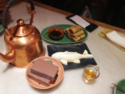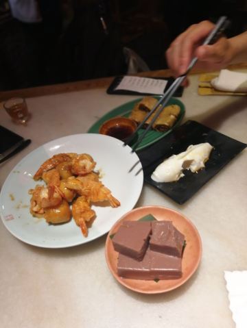这家店是连锁店,北京好多地方都有,装修也是北京风格,招牌梨汤也是用一个铜制的大壶装的,真的特别好喝,汤是那种透明的金黄色,很黏稠,喝下去,嗓子和胃里都很舒服, 推荐隔夜炖带鱼,炖的很烂,入味 宫保两样,把宫保鸡丁的鸡肉换成了虾球,甜辣口,虾球的加入,吃起来更鲜 梨球果虾仁,梨块裹面炸,然后和虾仁一起炒,很有创意,也很好吃