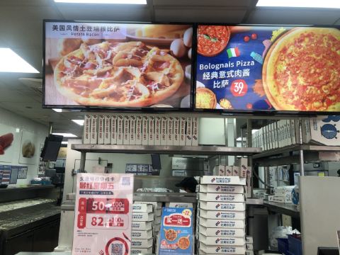 带着同学来图书大厦买书,哥们一直住郊区一周进一次城,说想吃,就带他去了楼下的达美乐。 【位置】就在中关村图书大厦楼下,朝北吧这是。 【环境】一直都知道达美乐是专供外卖的,所以对环境没报啥希望,不过整体还行,就是小了点,还是比较干净的。 【服务】可能也是专供外卖的,所以服务相对弱一些,上的也慢,我觉得跟我叫外卖差不多了。。 【口味】达美乐口味还是不错的,后来我又点了两次外卖,红薯边赞爆!!整体来说性价比很高~