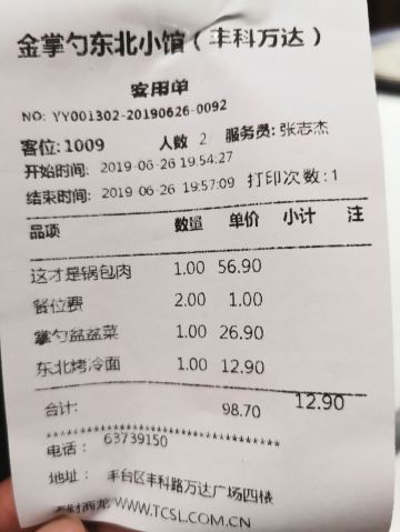 大伟大宝位于丰科万达广场四楼的“金掌勺东北菜”,浓郁的东北风内饰风格,座椅舒适,服务热情,上菜速度快,在所有广场内的餐厅中,个人评价,他家菜量最大,明厨亮灶,菜品表现中规中矩,质量稳定。我办理他家的会员卡,会员优惠后,菜品价格极具诱惑力。 在“金掌勺”,吃的香,吃的饱,吃的实惠。 {猪肘价格对比}德国餐厅的烤猪肘,188元/份,“金掌勺”家炖猪肘,28.9元/份,同样食材,两种做法,价格迥然。“金掌勺”实在呀,讲真,在万达广场内,“金掌勺”是家人或朋友聚餐,不讲排场、讲究实惠的最佳选择。
