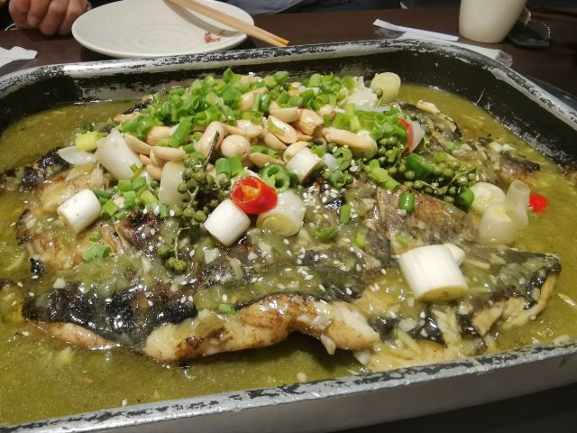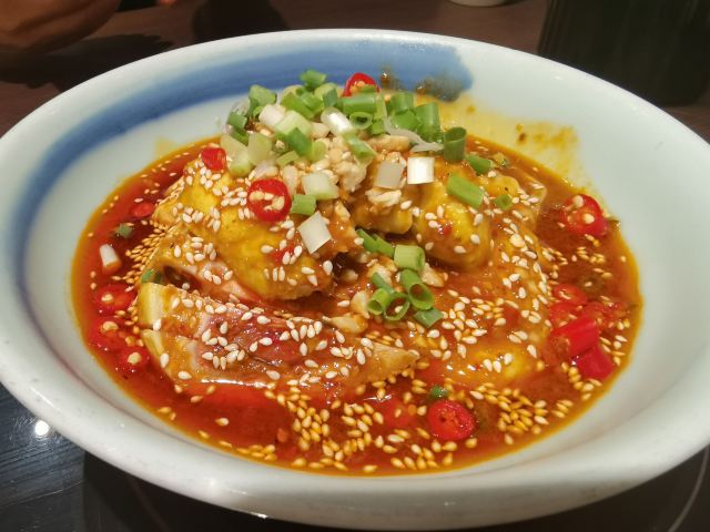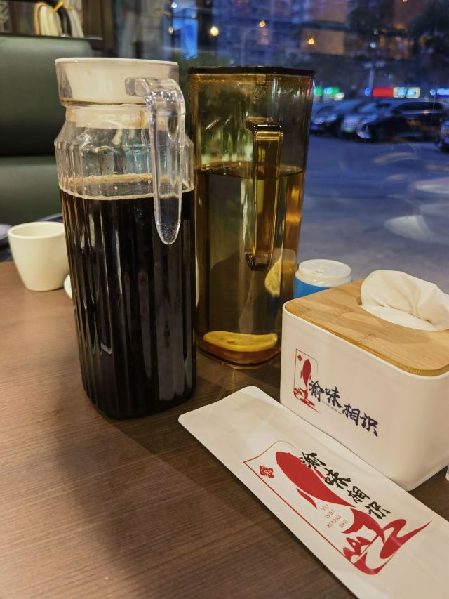就在离家不远的渝味相识把天的晚餐解决。餐厅就在西站南广场一侧,很好找,我们刚刚晚饭时间就进店了,进店第一名,哈哈哈!选了一个靠窗的座位。 服务员很热情,帮我们介绍菜品,主打烤鱼,我们来一个又麻又辣的|藤花椒烤鱼^,配上藕片和笋条。烤鱼确实是好吃的,肉质鲜美,藤椒口味,吃到嘴里麻麻的,嘻嘻! |口水鸡^42元一份,量很足,口味也很正宗,是地道的川菜馆子。 五星推荐这家餐厅,可以来尝尝烤鱼呀!